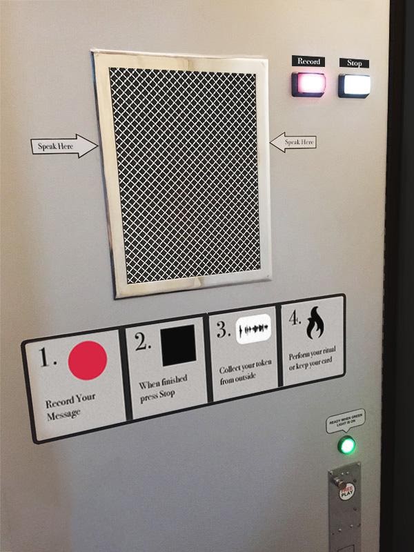 We all have burdens, secrets and thoughts that we would like to simply let go. These are intagible thoughts and feelings that would potentially stay with us forever. The Black Booth is a safe place where one could complete a ritual of relinquishing control over these negativity. The ritual welcomes people into a booth, where one could record their message and turn it into a token -that can either be destroyed or kept.